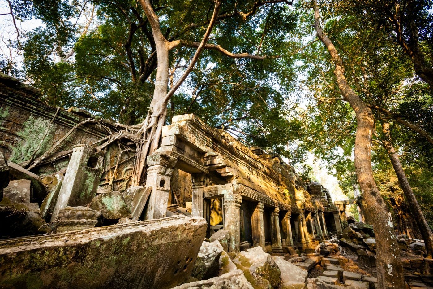 Ta Prohm is een van de populairste attracties van Angkor, omdat veel van het oerwoud nog niet gerooid is en het er heel erg uitziet zoals de meeste Angkor-monumenten eruit zouden hebben gezien toen de Europese ontdekkingsreizigers er voor het eerst op stuitten, rond 1860. Overnachting in Siem Reap.